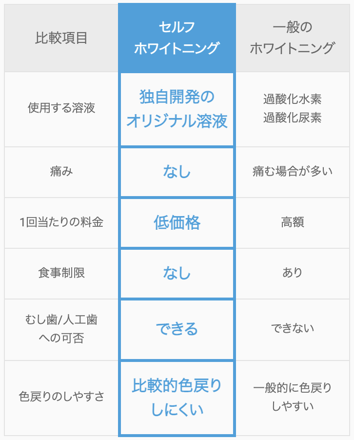 セルフホワイトニングと従来のホワイトニングの比較